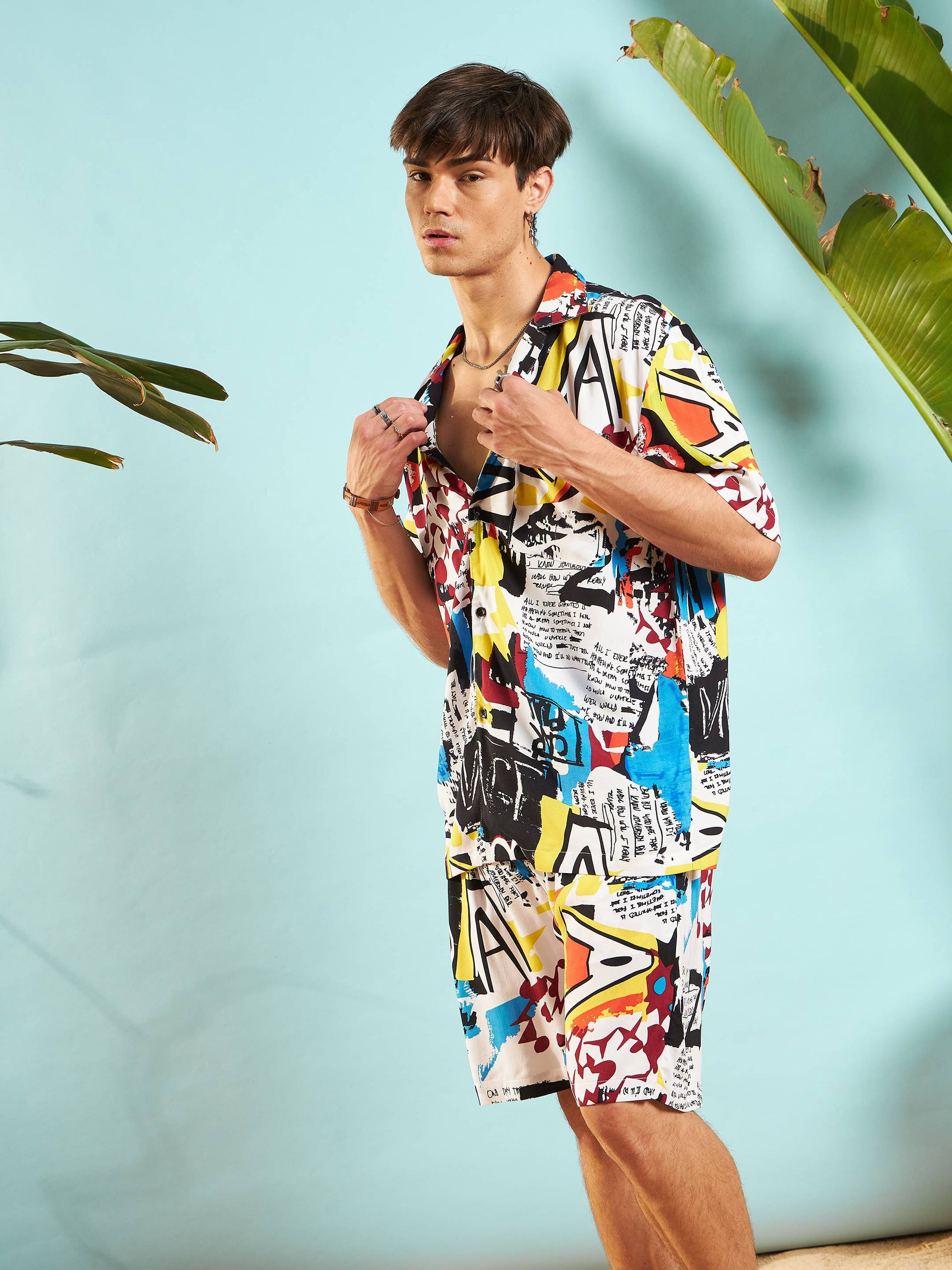 Men White Multi Colour Abstract Print Relax Fit Shirt