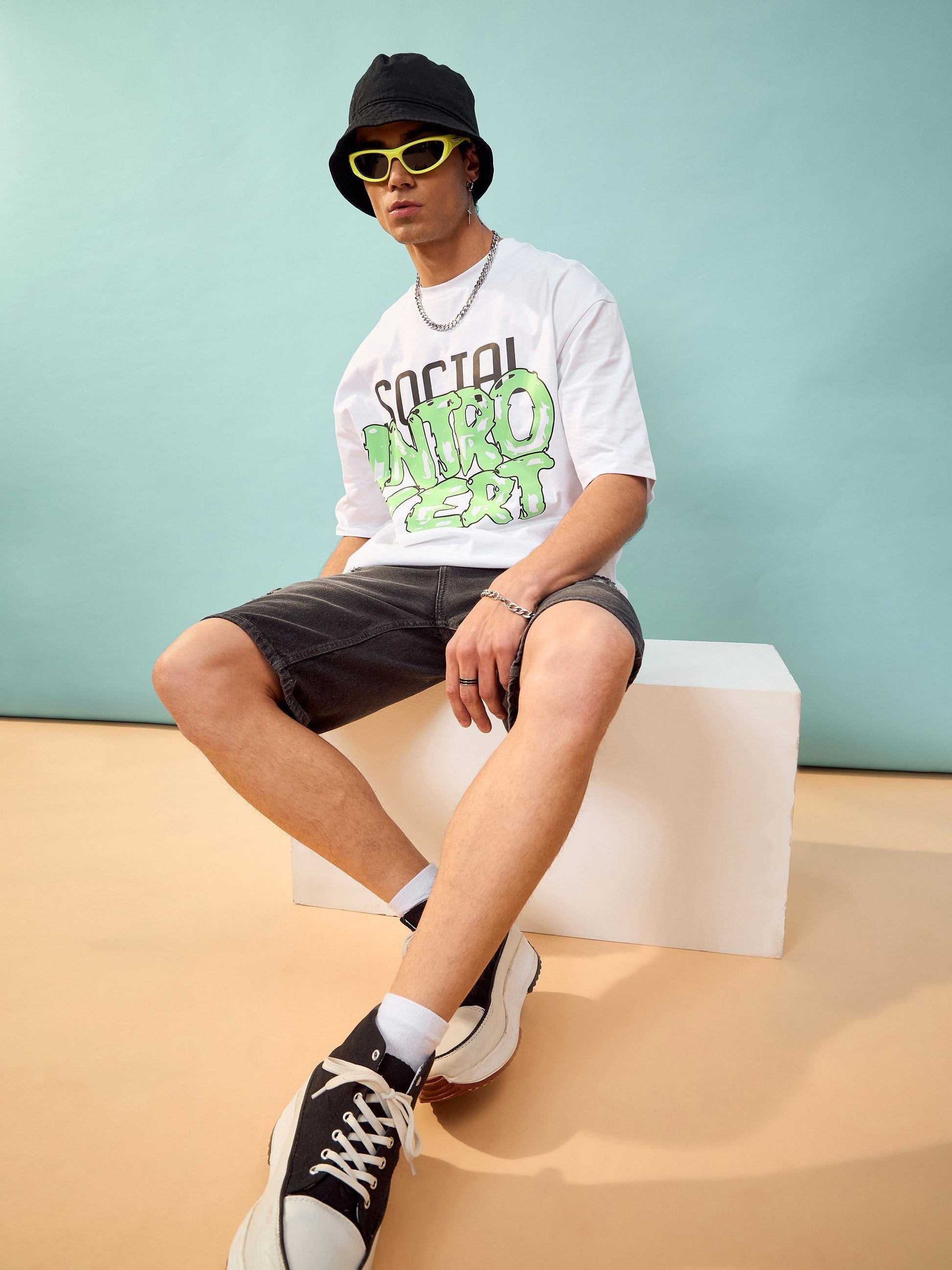 Unisex White SOCIAL INTROVERT Oversize T-Shirt, in Cotton fabric, Unlined, Regular length, Oversize Fit, No Closure, Straight Hemline and features Print At Front